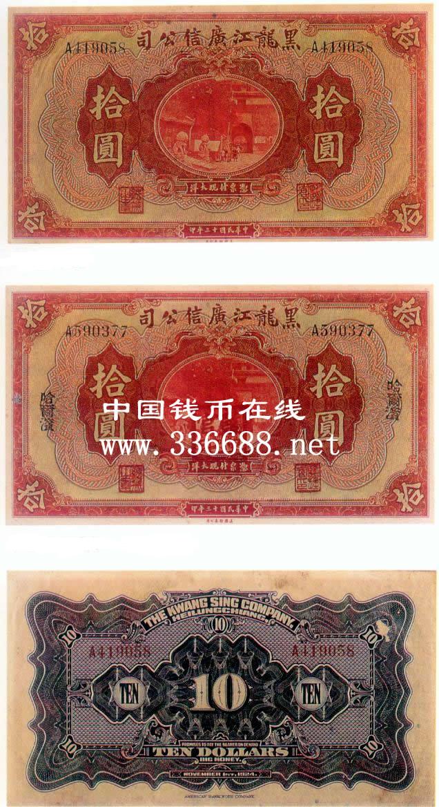 [组图]黑龙江广信公司民国13年(1924)大洋券   10元         ★★★