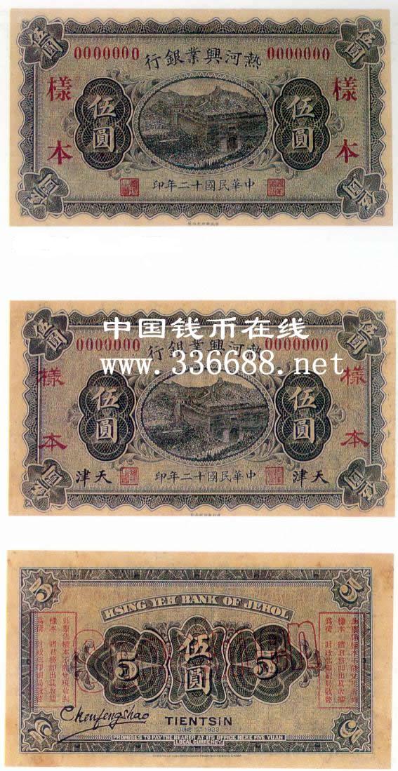 [图文]热河兴业银行民国12年(1923)银元券   5元         ★★★