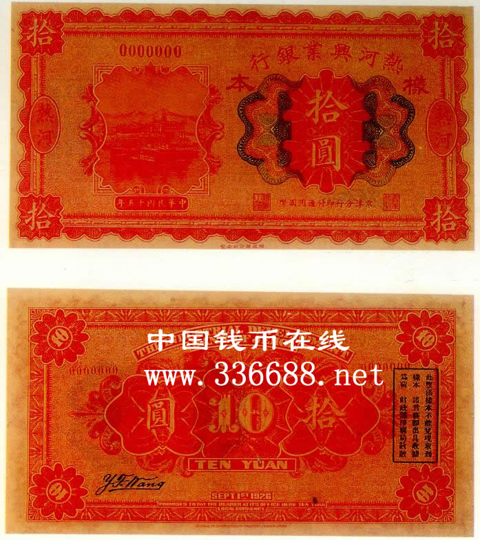 [图文]热河兴业银行民国15年(1926)银元券   10元         ★★★