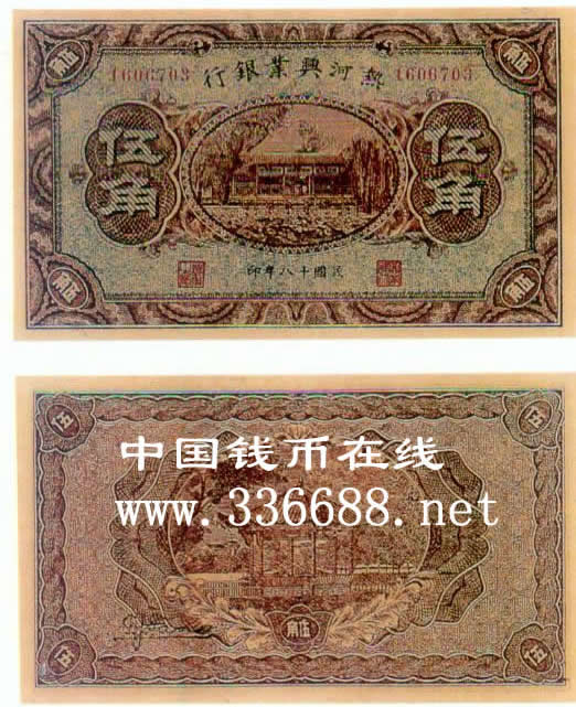[图文]热河兴业银行民国18年(1929)银元券   5角         ★★★