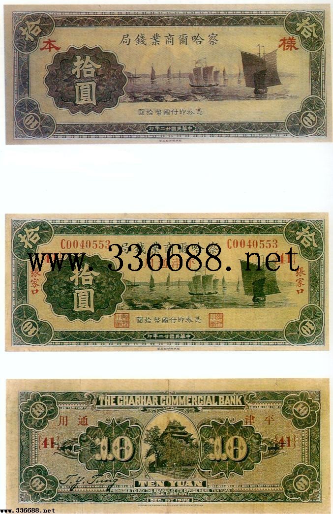 [图文]察哈尔商业钱局民国22年(1933)银元票   10元         ★★★