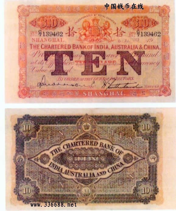 [图文]1919年印度新金山中国汇理银行麦加利银行   10元         ★★★