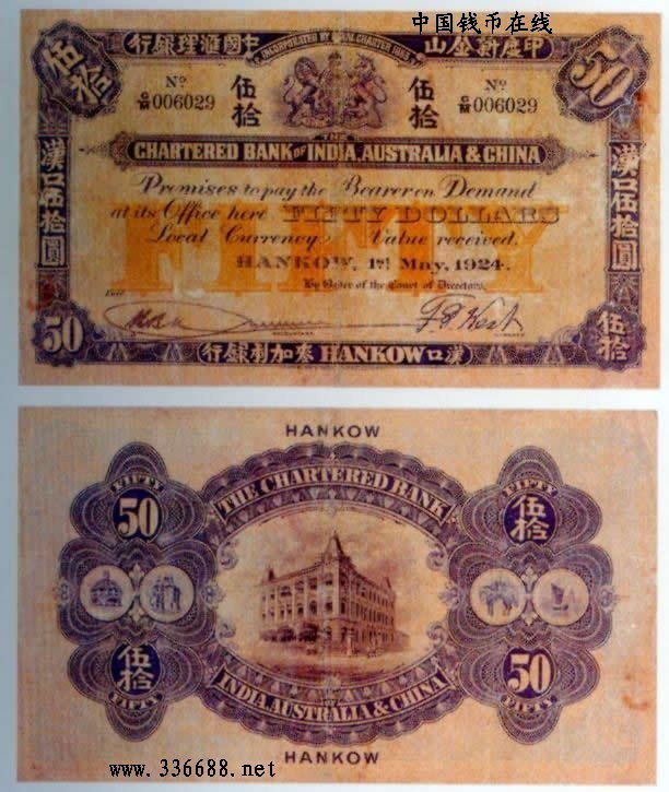 [图文]1924年印度新金山中国汇理银行麦加利银行   50元         ★★★