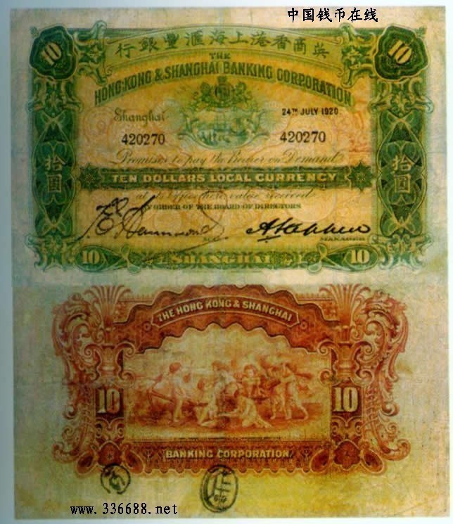 [图文]1920年英商香港上海汇丰银行   10元         ★★★