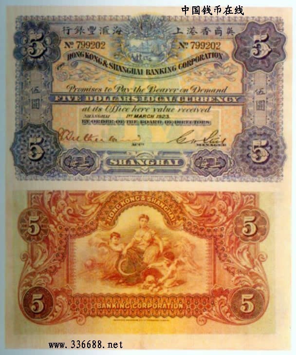 [图文]1923年英商香港上海汇丰银行   5元         ★★★