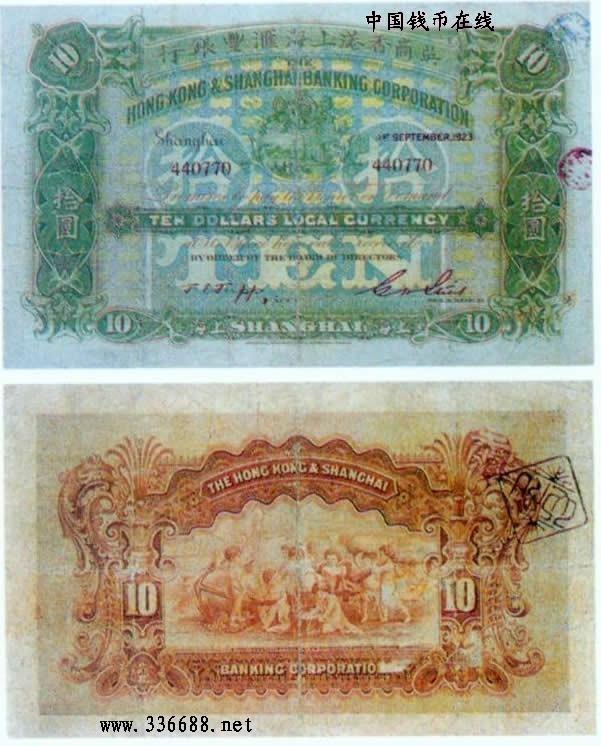 [图文]1923年英商香港上海汇丰银行   10元         ★★★