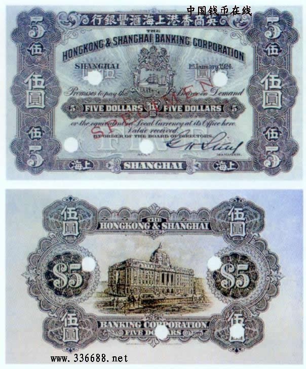 [图文]1924年英商香港上海汇丰银行   5元         ★★★