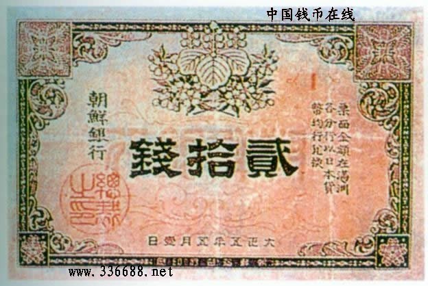 [图文]1916年朝鲜银行   20钱         ★★★