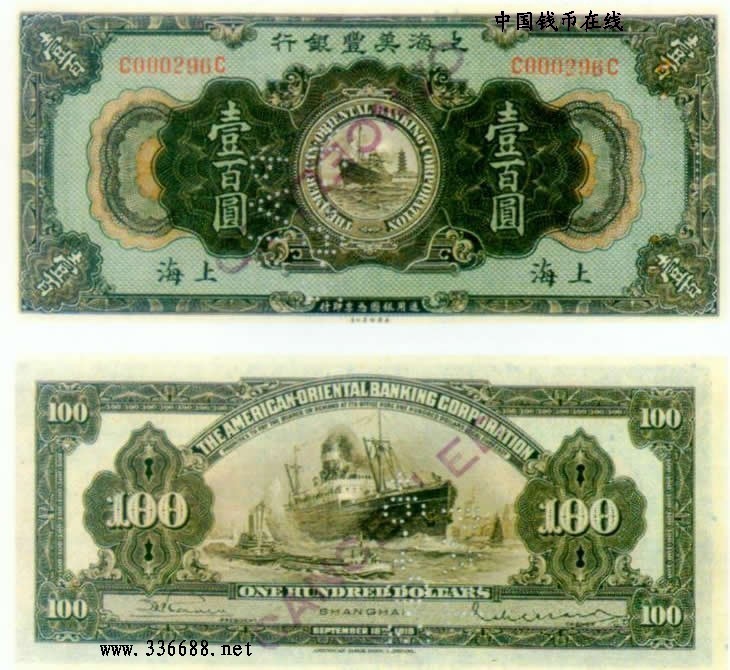 普通洋行客钞纸币[上海美丰银行][图文]1919年上海美丰银行   100元刘扬01-16